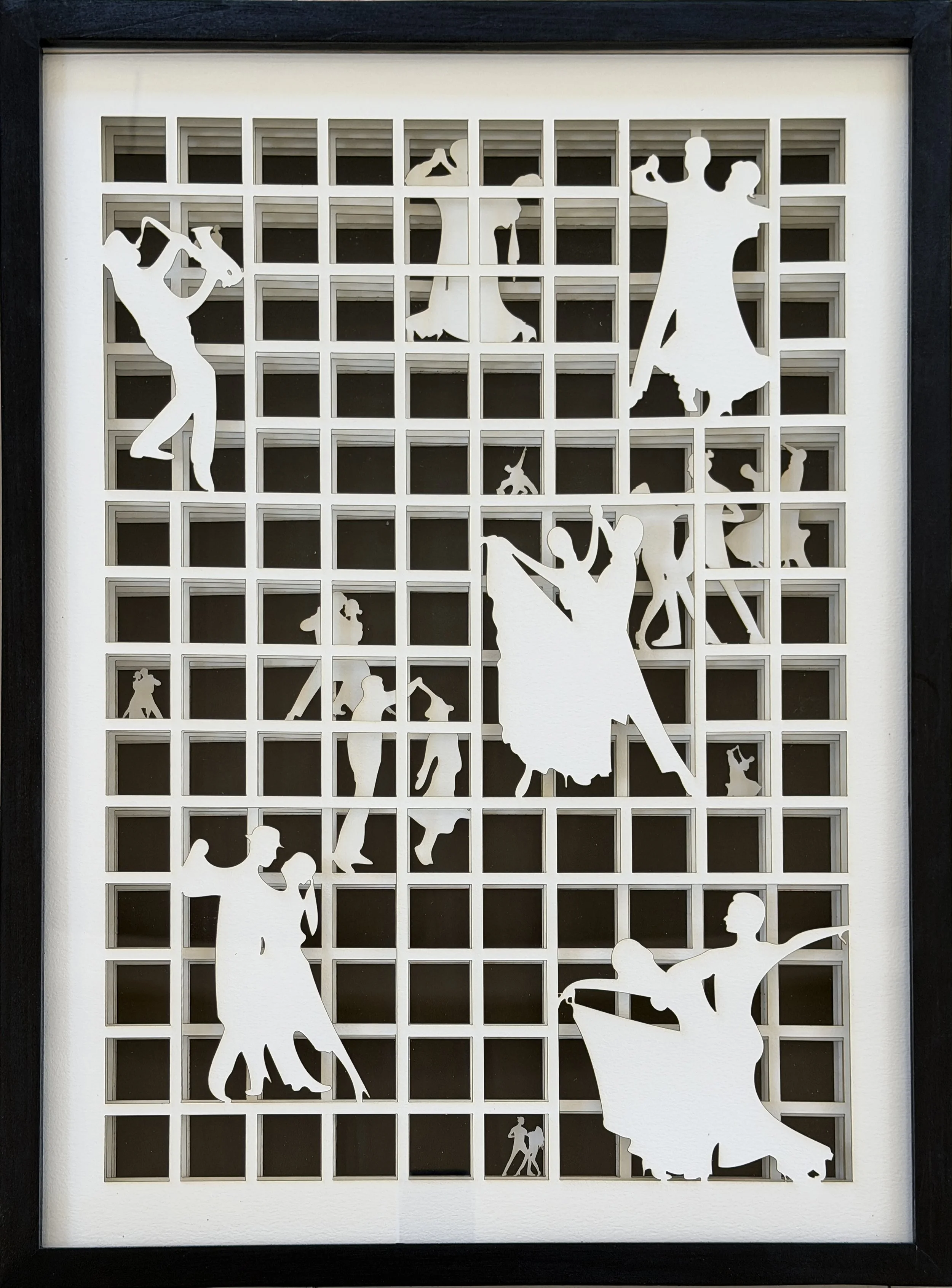 Some works are created on flat surfaces, while others incorporate multiple layers of cut paper, dimensional elements, and sculptural details that extend beyond the surface toward the viewer. The result is a collection that blends drawing, paper, texture, and depth to create pieces that invite close exploration.
