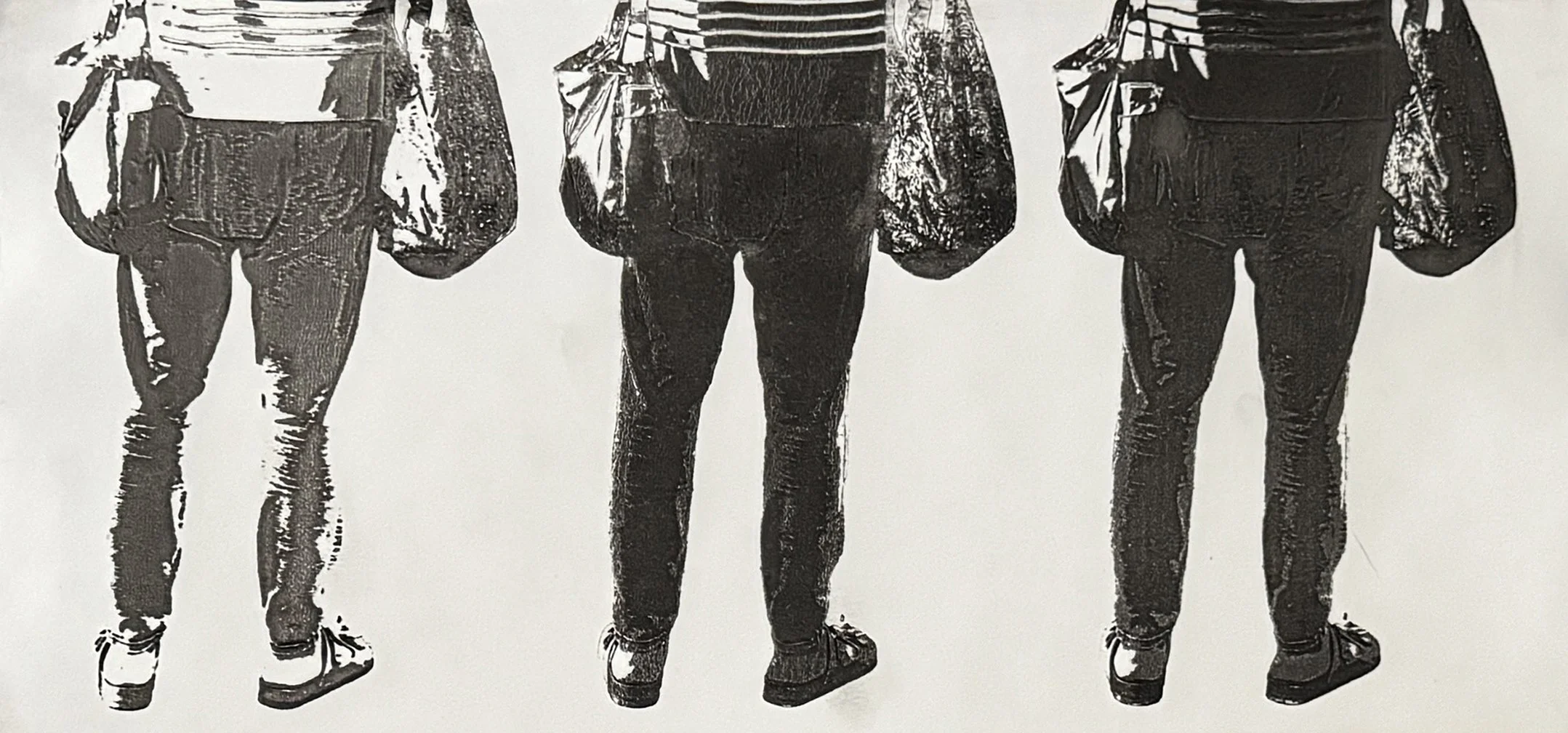 I capture fleeting moments in motion, distilling them into hand-pulled prints on an etching press that emphasize anonymity and movement. Using photography, digital manipulation, and laser-engraved acrylic plates,